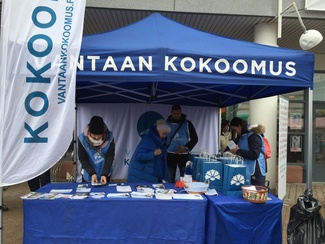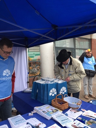 Vantaan Kokoomuksen kuntavaali ehdokkaat olivat vahvasti esillä la.25.3.2017 Myyrmäen maalaismarkkinoilla järjestetyssä vaalitapahtumassa.