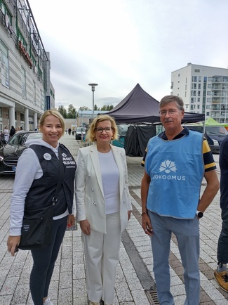 ![]() Paikalle saapui myös Työministeri Arto Satonen. Lupsakka mies Sastamalasta. 25.8.2023 |
